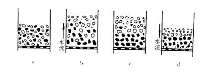 a—分層前顆粒混雜堆積;b—上升水流將床層抬起;