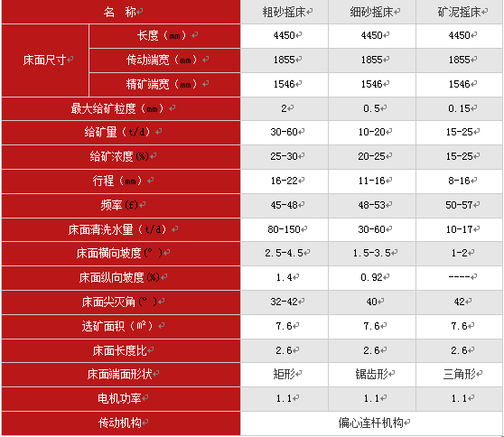 搖床選礦是一個傾斜的床面上借助機(jī)械石板對稱往復(fù)運動和薄層斜面水流等聯(lián)合作用,使礦粒在床面上松散分層,分帶,從而使礦物按密度不同來進(jìn)行分選的過程。